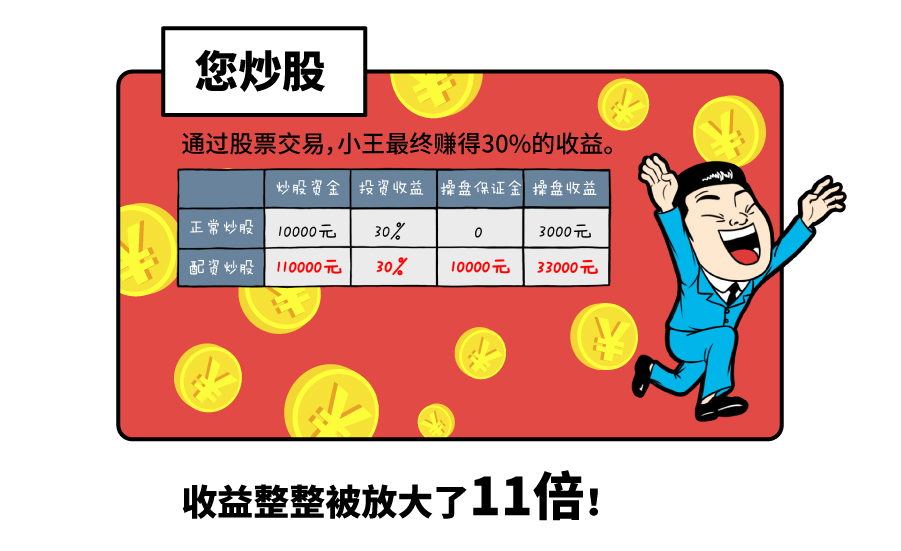 股票配资是一种创新的资金融资工具,通过少量的自有资金当本金,向本公司借入本金3-10倍的资金,用最少的资金赚取最多的利润。列如:您自有资金10万向理财用户借100万一共110万,您拿110万投资一只股票,涨10%您就赚取11万的利润。